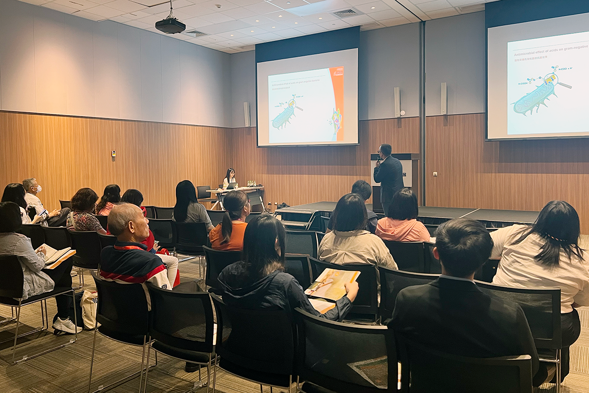 本公司於2024年6月20日在台灣畜牧產業展舉辦了一場技術研討會,題目為『應用二甲酸鹽和第三代酸化劑於豬隻永續生產中改善健康與表現』。此次研討會特別邀請了德國愛德康公司飼料部全球技術服務的Dr. Stevan Petrović擔任講師。
