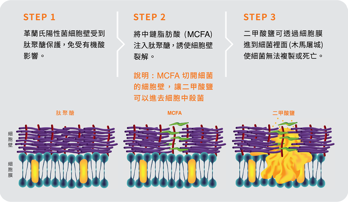 結合二甲酸鈉及單月桂酸甘油酯的強化效果